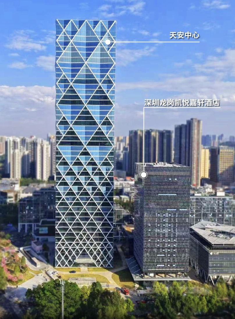 同时,酒店毗邻深圳国际大学园,与园区内配备专属停机坪的超高层地标写字楼——天安中心共同构成综合体核心配套。