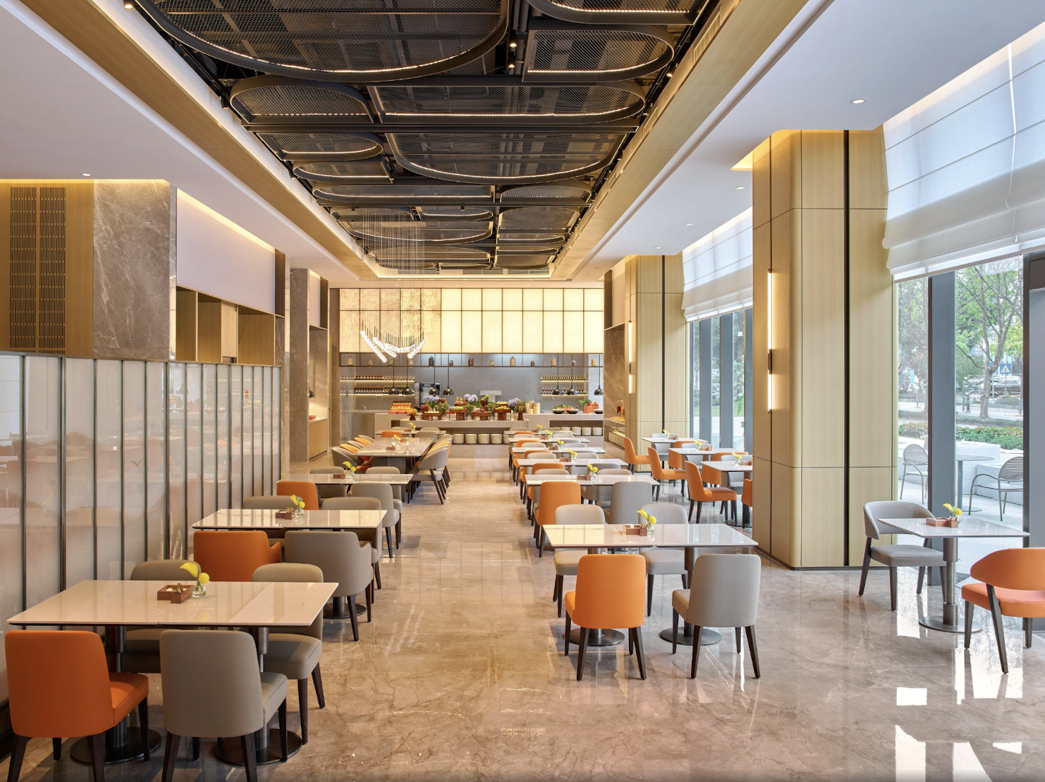 公共设施方面,6层的健身中心24小时开放,住客可在锻炼时俯瞰城市昼夜景致。餐饮区提供地道广式点心和西式简餐,大堂吧则供应咖啡、鸡尾酒等轻食饮品。
