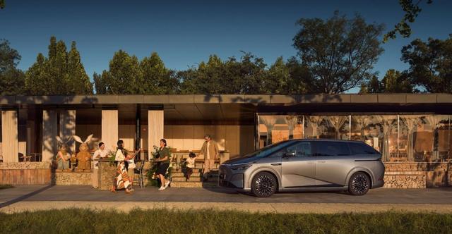 车身侧面,新车保留了棱角分明的“超现实主义”线条和內凹式筋线,力量感十足。双侧侧滑门得以保留,并配备了新样式的19英寸密条辐轮圈。车身尺寸方面,长宽高分别为5316/1988/1785mm,轴距为3160mm。由于包围套件的调整,车长相比老款纯电版增加了23mm。车尾部分,新车维持了标志性的斜后窗与贯穿式尾灯设计,尾灯与侧滑门滑轨形成一体式连接。多层次的后备厢设计与内凹式牌照框,增强了车尾的立体感。此外,新车提供星云紫、极光青、暗夜黑、星舰灰(哑光)、新月银、星云白共6种车身颜色。